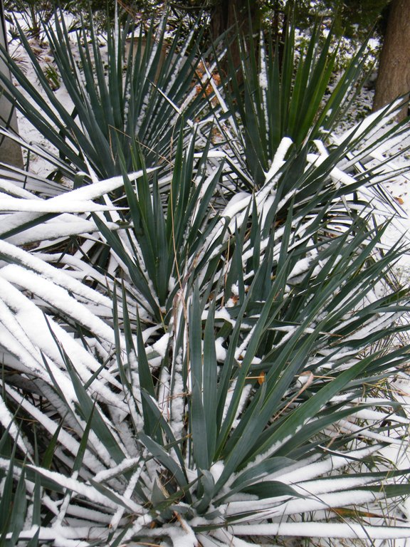 A jukkákat nem kell félteni, csupán a tőrlevelű pálmaliliom (Yucca aloifolia) szokott széthullani. A keskenylevelű pálmaliliom (Yucca glauca), a II. Victor Emmanuel jukka (Yucca aloifolia purpurea x recurvifolia), a pompás pálmaliliom (Yucca gloriosa f. nobilis) és Janakidisz Demeter hármashibridje (Yucca aloifolia ✕ stricta ✕ baccata) mindent kibírnak.